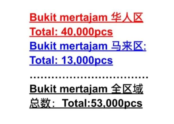 B普遍性服务是指要派发整个大山脚区域,或是槟岛整个区域呢?还是大山脚的部分区域而已?这是跟据其所选择的个别区域,然后跟着该区域的数量,不分种族的全部派发完,一般传单服务是这样的。